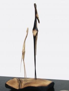 鶴の親子の和みの風景です。自然と笑みが漏れるのではないでしょうか。 B-9-19に比べ小ぶりな作品です。